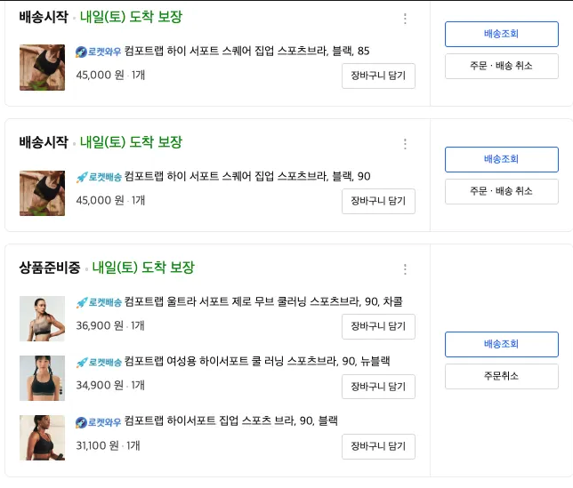 25.06.13 쿠팡 - 컴포트랩 스포츠브라 왕창 구매 후기
