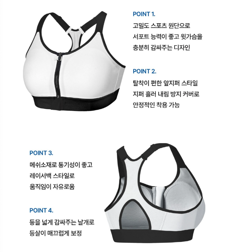 - 스포츠 브라는 그냥 꾸깃꾸깃 입는거, 뒤 후크, 앞 후크 이렇게 3종류 중에 후크든 자크든 앞뒤에 열리는 게 편하다. 그냥 꾸깃꾸깃 입는 거는 다시는 사지 말자~ 후크 있어도 뭔가 꾸깃꾸깃 입게끔 돼있는 것들이 있는데... 결제 지르기 전에 한번 꾸깃 꾸깃 시뮬레이션을 돌려보는 것이 시간 절약에 좋을듯