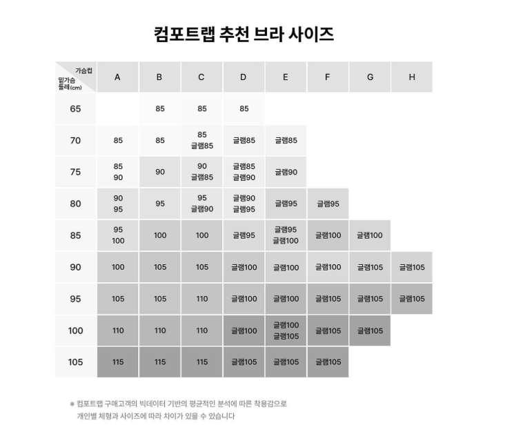 - 85는 무조건 작다고 보면 될듯 (밑가슴 둘레 75)