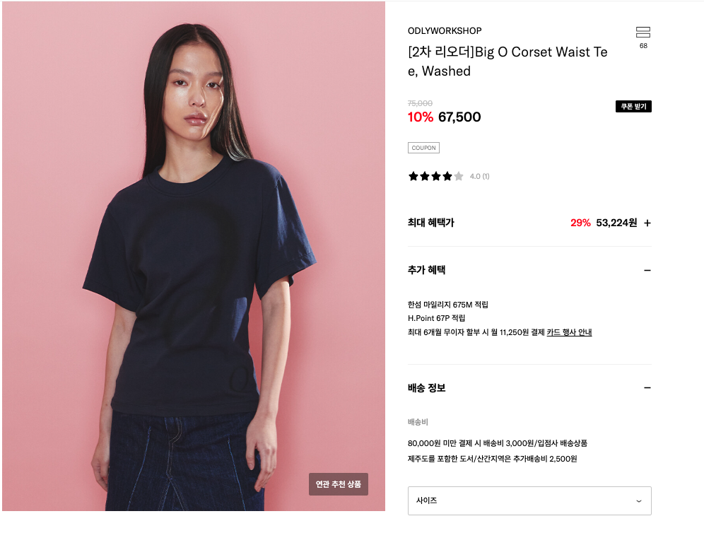 오들리워크샵은 티셔츠 핏이 좀 독특해서